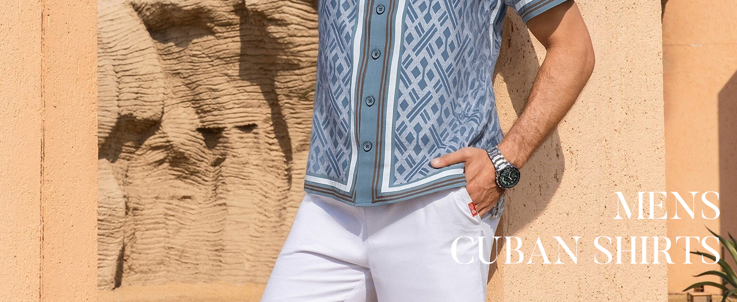 Mens Summer Outfit: Wear mens button down shirt with jeans for a casual look, or style it with shorts for the perfect beach vacation outfit, even can layer it open over a plain t-shirt for a relaxed vibe. Whether you're heading to a daytime getaway or a night out, cuban shirts for men keeps you looking cool and standing out from the crowd.
