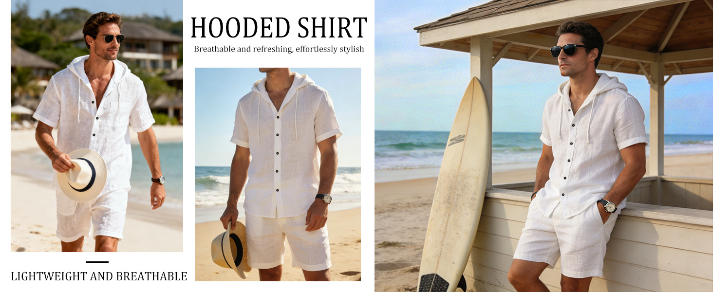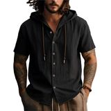 Stylish Casual Design: This unique linen button-down shirt features a button closure and a drawstring hood, combining practicality and fashion. Whether you're traveling or hanging out with friends, it offers a style that is both stylishly avant-garde and effortlessly relaxed.