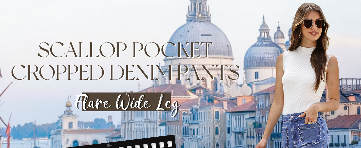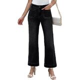 【Design】These womens jeans feature a breezy wide-leg silhouette and form-fitting high-rise, flattering your figure and slender legs. The classic zipper fly and button closure, novel scalloped patch pockets, and ankle-length length make them a stylish and unique pair.