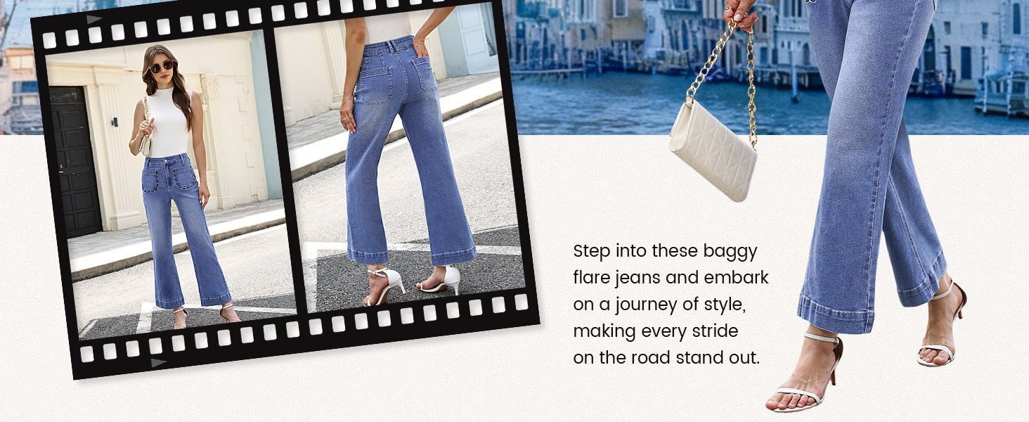 【Styling】Jeans for women trendy pair effortlessly with a variety of tops, from cropped tops to tucked-in shirts, creating a variety of elegant and fashionable looks. Throw on some heels and you're ready for a fancy night out, or sneakers for a more chill vibe.