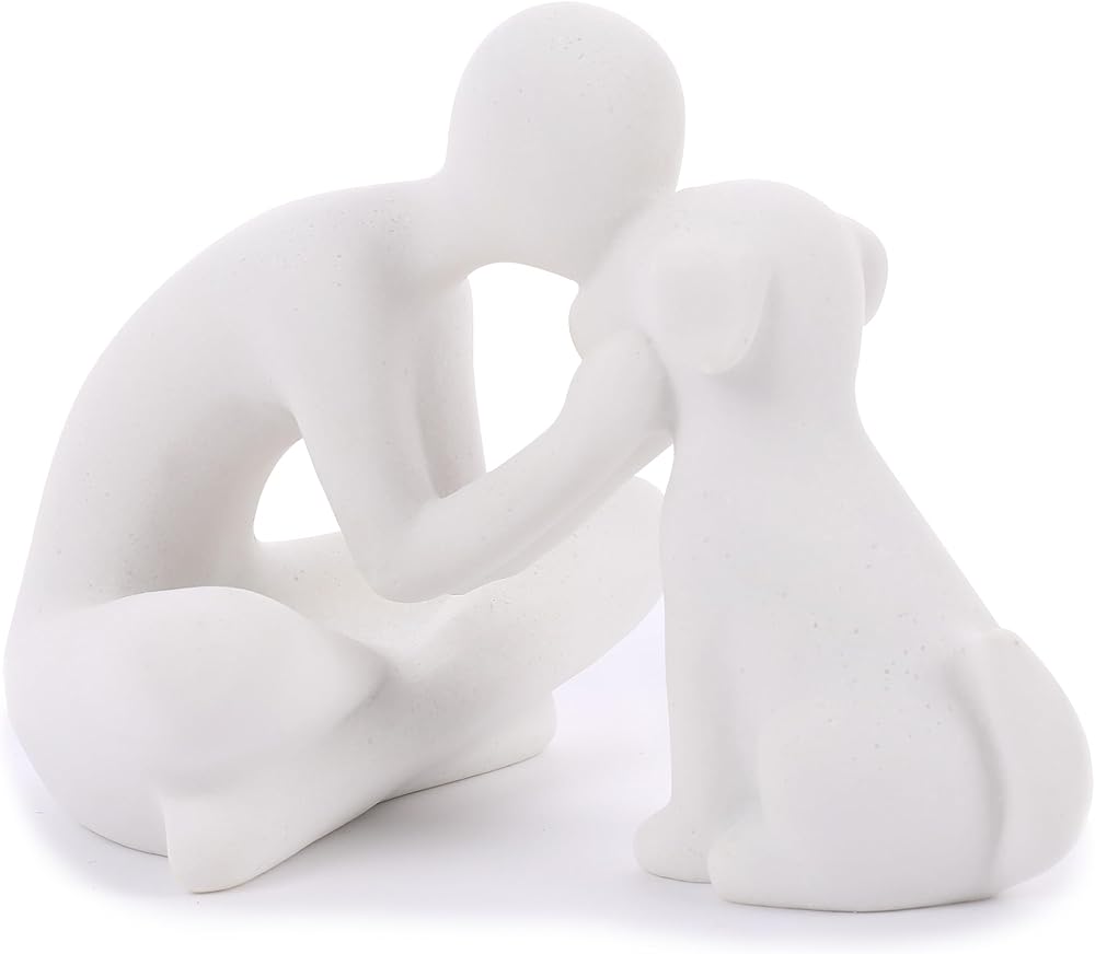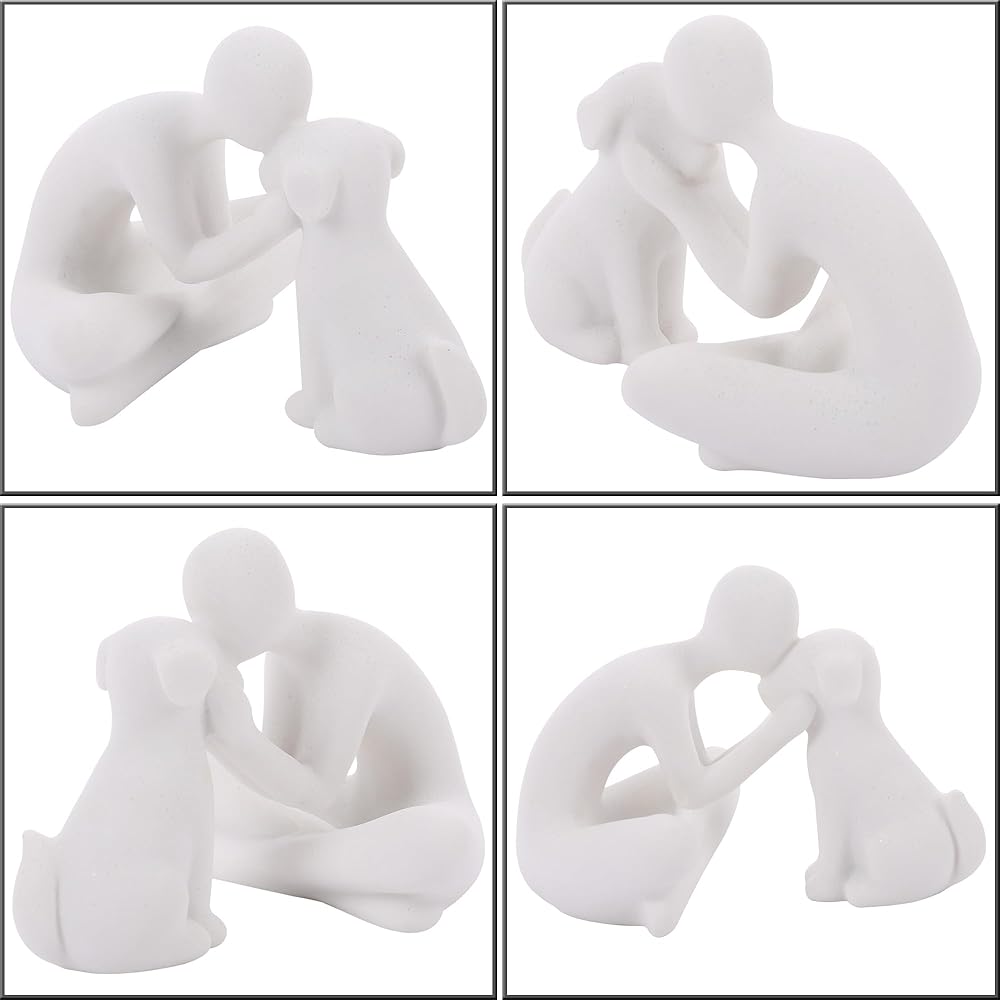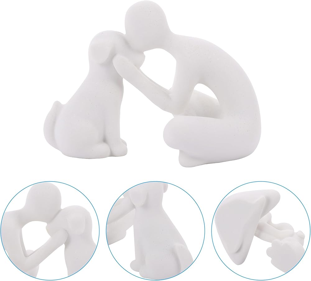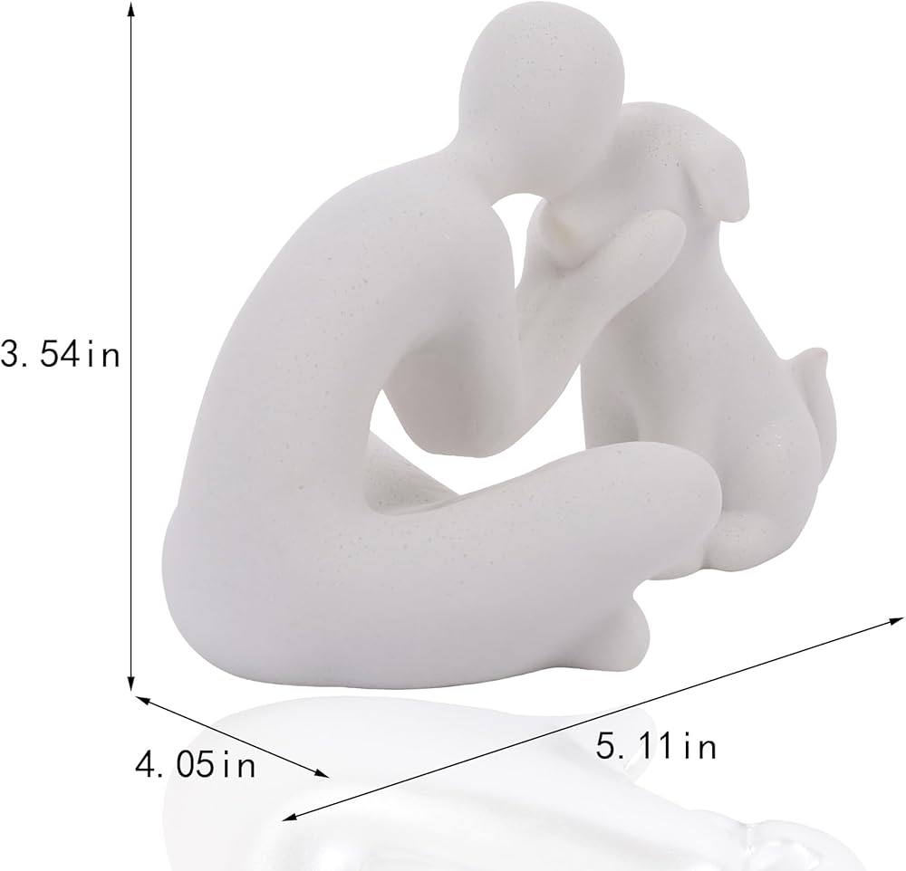 Unique design. The interactive scene between man and dog was recorded with the model, expressing the friendship and affection between man and dog. It can make your home more loving. Specifications. Measuring 5.11 inches long, 4.13 inches wide, 3.74 inches high and weighing 0.75pounds, it can be placed anywhere you want.