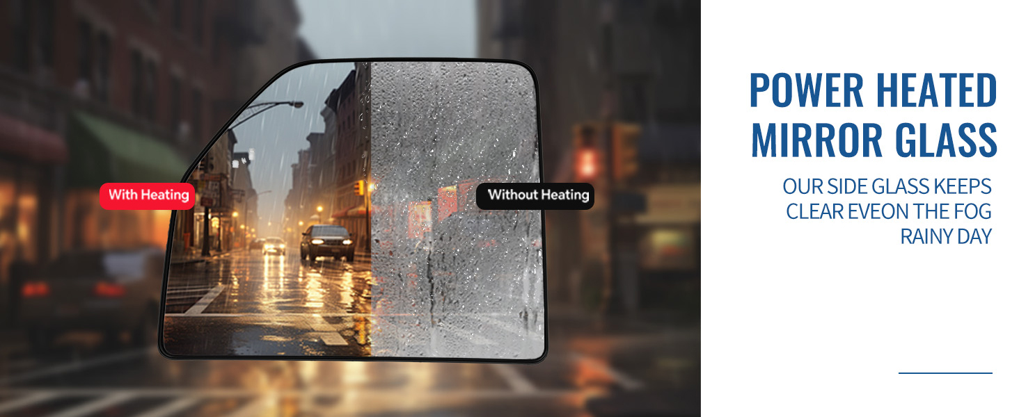 Power Heated for All-Weather Clear Visibility: Equipped with a power heated feature that quickly melts snow, ice, and fog, this mirror ensures clear visibility even in harsh weather. Drive with confidence in rain, snow, or foggy conditions