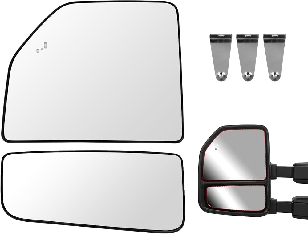 Left Driver Side Lower & Upper Mirror Glass Replacement for 2015-2024 Ford F150 F250 F350 F450 F550, Towing Mirrors Convex Rearview Glass with Backing Plate and Blind Spot Light