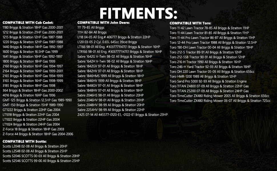 • 【Vehicle Fitment】Effoexparts starter motor compatible with Briggs & Stratton 11HP-25HP / Cub Cadet 1215 1220 GMT-125 GMT-190 364 Z-Force 18 44 87-06 / John Deere Z425 17-14