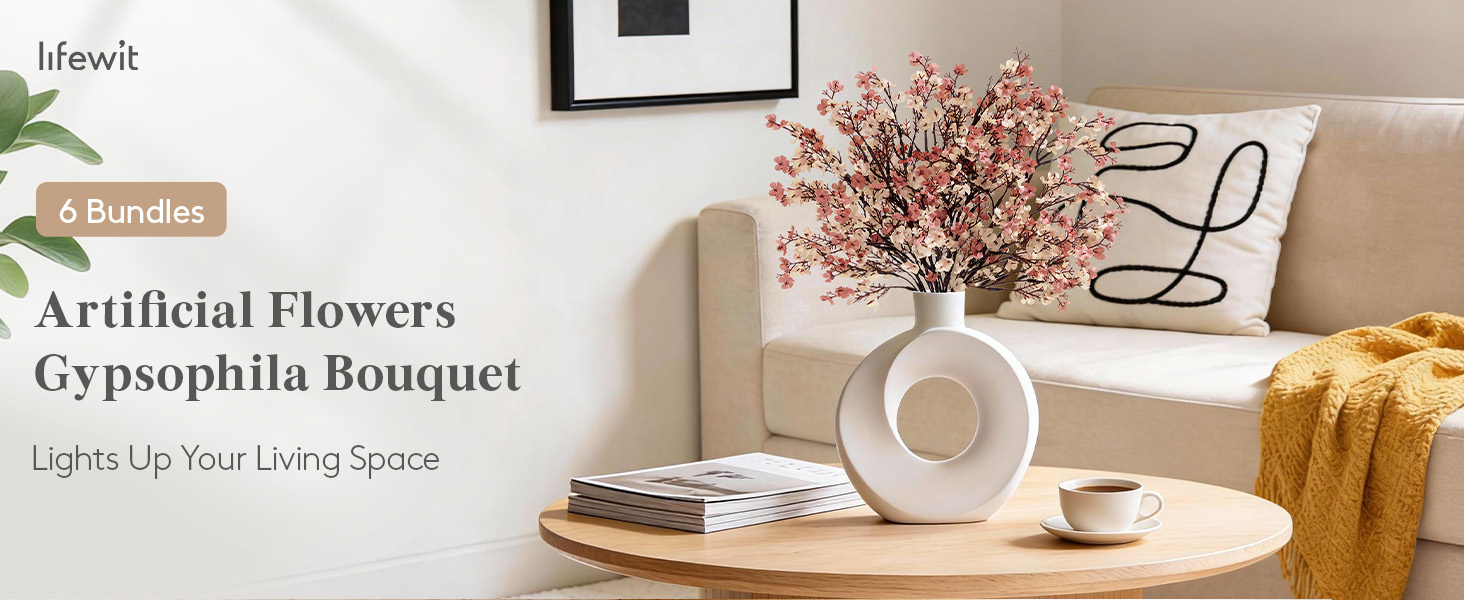 Various Quantity Options: Each package includes 6 bundles silk gypsophila bouquets (vase not included). Different quantities create varying effects: 4-6 bundles offer a relaxed look, while 8 bundles provide a dense, lush effect. Remember to fluff and separate stems after unpacking