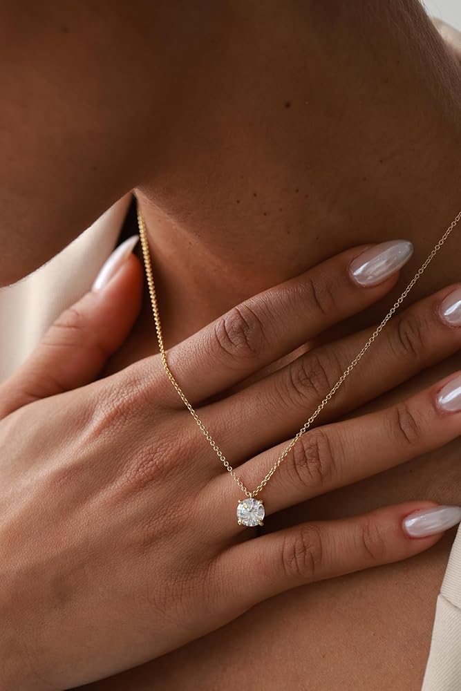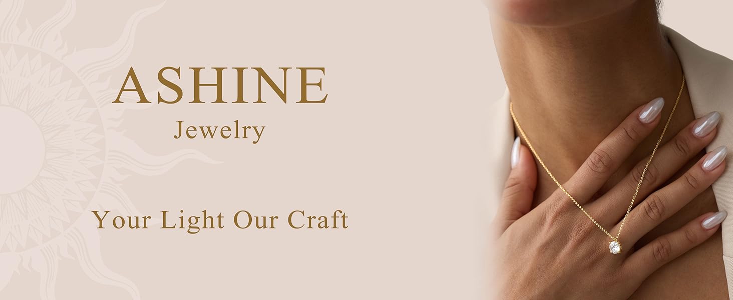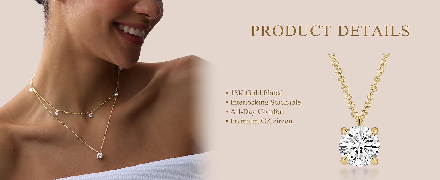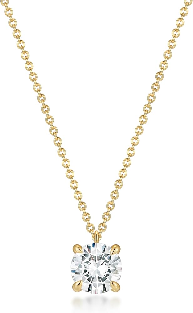 ASHINE 14K Gold Plated Dainty Choker Necklace for Women, Solitaire 5A Cubic Zirconia Round Brilliant Cut Pendant Necklace