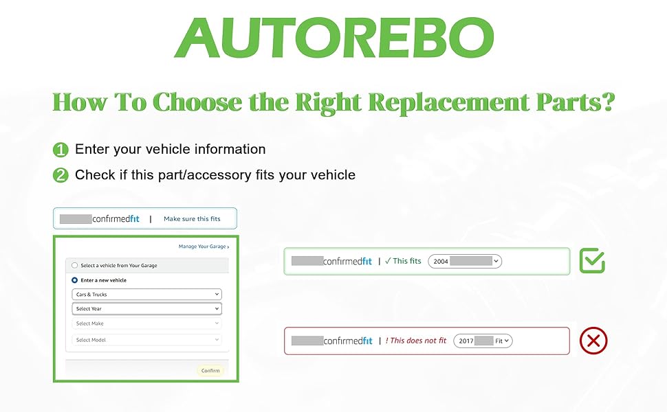 [ملاحظة الإعداد]: قبل الشراء، يرجى الرجوع إلى "amazonconfirmedfit" أو مخطط السيارة المتوافق؛ تحقق مرة أخرى من رقم جزء OE للجزء وسنة السيارة/التصنيع/الطراز للتحقق من التوافق والتأكد من ملاءمته لسيارتك.