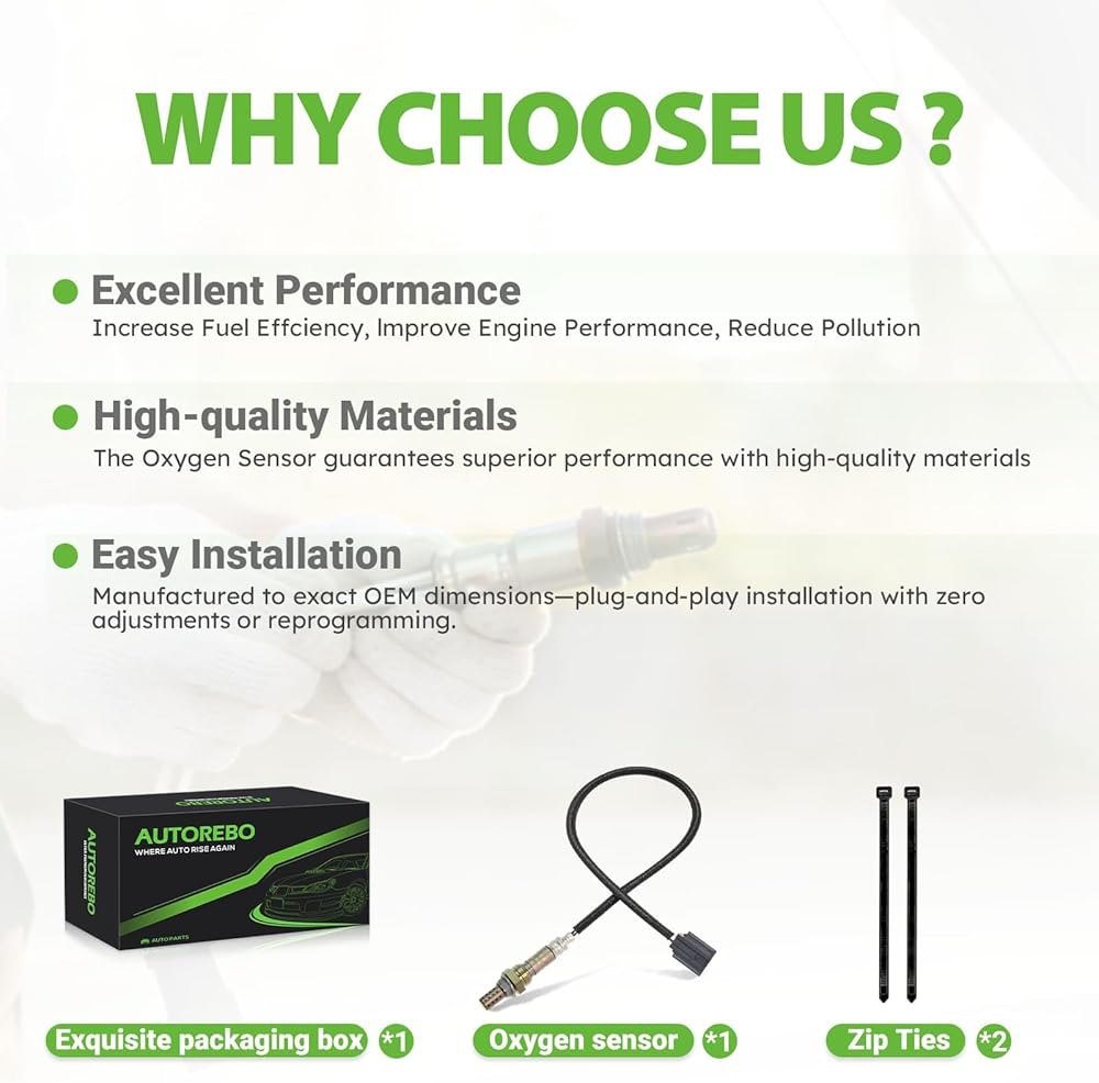 [معيار OE]: تم تصميم جميع أجهزة استشعار الأكسجين AUTOREBO لتحقيق مواصفات OE أو تجاوزها، وتخضع لاختبار صارم لمراقبة الجودة. يتطابق كل مكون مع تصميم المعدات الأصلية أو يحسنه لضمان التثبيت السريع والسهل مع الأداء والاعتمادية الفائقة الممكنة.