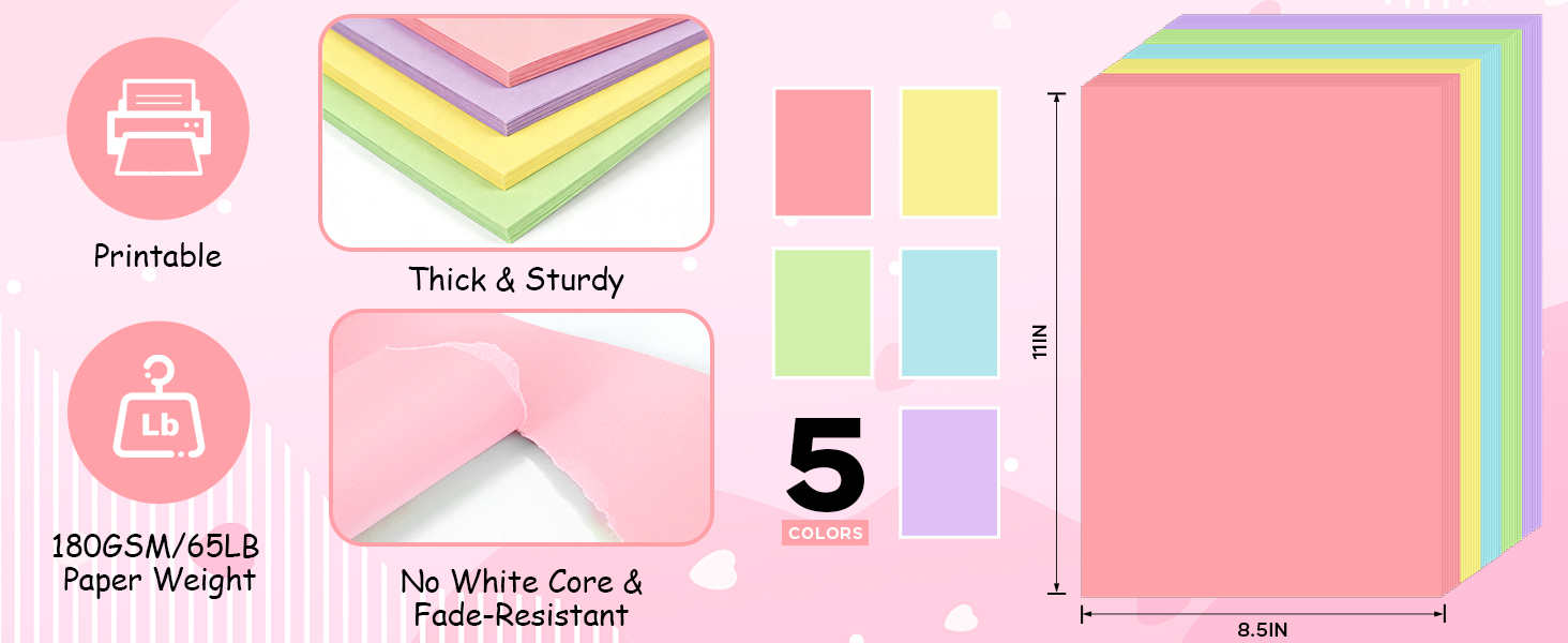 Premium 180gsm/65lb Colored Cardstock: Experience superior quality with our heavyweight 180gsm (65lb cover weight) cardstock, engineered for crisp, professional results every time. Boasting fully saturated, fade-resistant pigments, each sheet ensures your creations stay vivid and long-lasting—ideal as the premium base for all your crafting and printing needs.