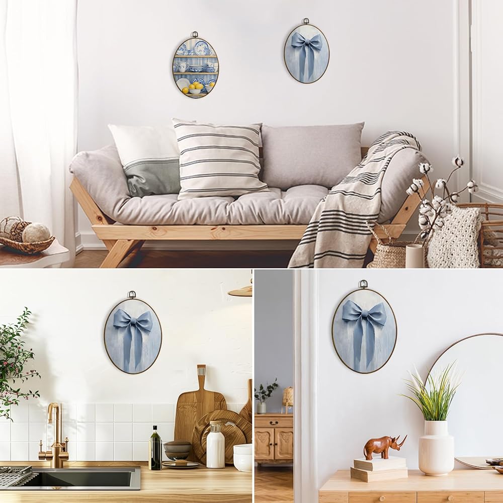 Compact Size & Materials: This 8.7 x 11.3 inch wall hanging decor is available in both oval styles. Made of canvas, a faux wood frame, and a separate metal hook, it's easy to store, and simple to hang on various wall surfaces.