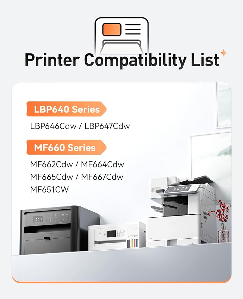 Compatible Printers: Compatible with Canon Color imageCLASS LBP646Cdw LBP647Cdw, Color imageCLASS MF662Cdw MF663Cdw MF665Cdw, Color imageCLASS LBP640 LBP640C MF660 MF660C Laser Printer.