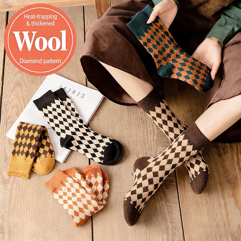 CLASSIC DESIGN: Timeless argyle diamond pattern crew socks featuring vintage-inspired geometric designs in multiple coordinating color combinations