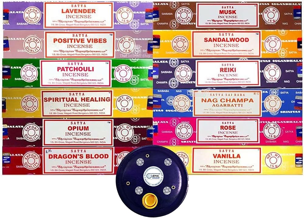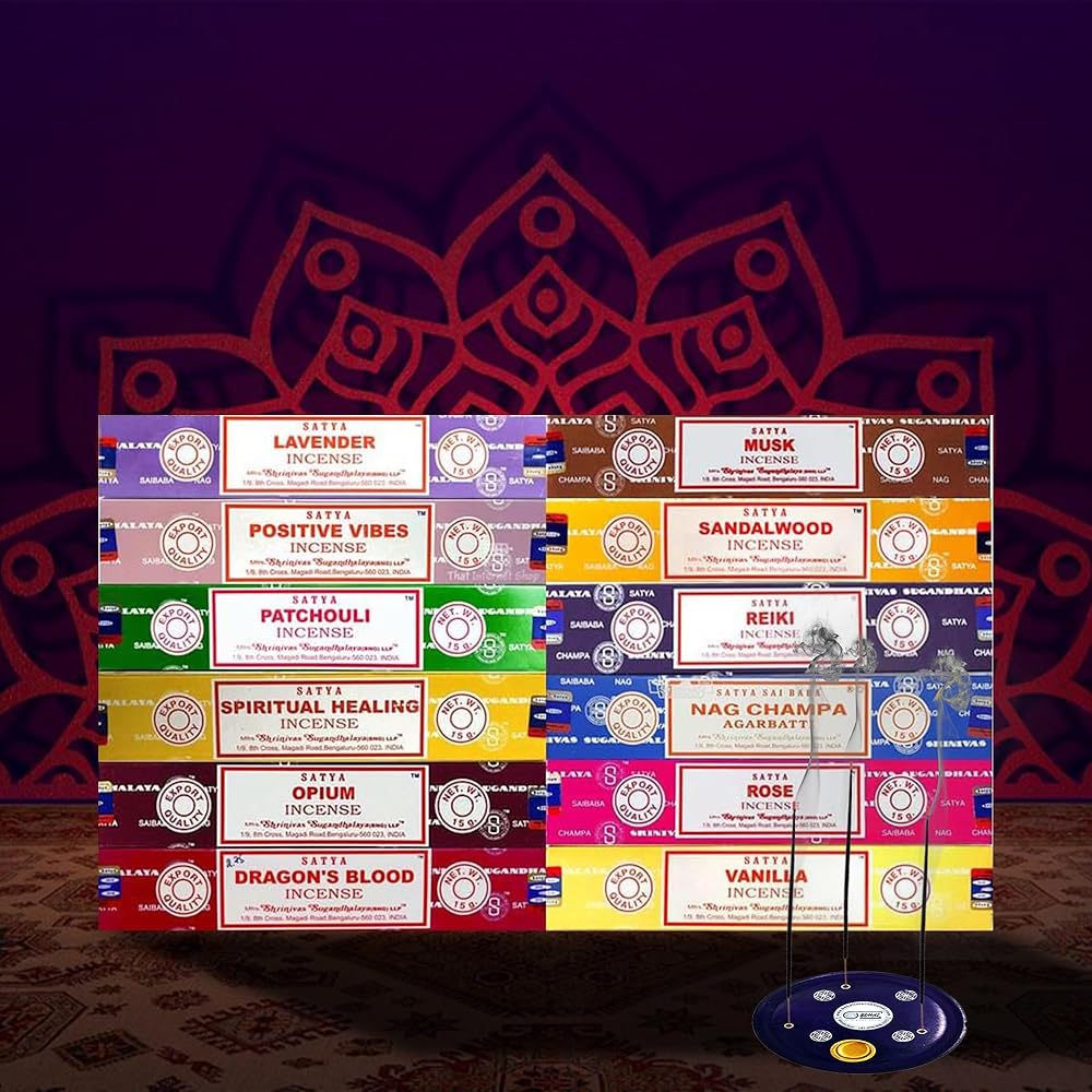 Immerse yourself in the soothing aromas of the Satya Sai Baba Nag Champa Incense Sticks. This assorted pack offers a selection of enchanting fragrances, each crafted to create a calming and spiritual ambiance in your home, meditation space, or yoga studio.