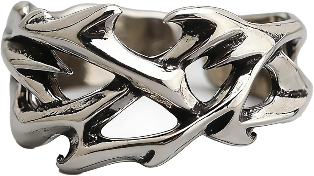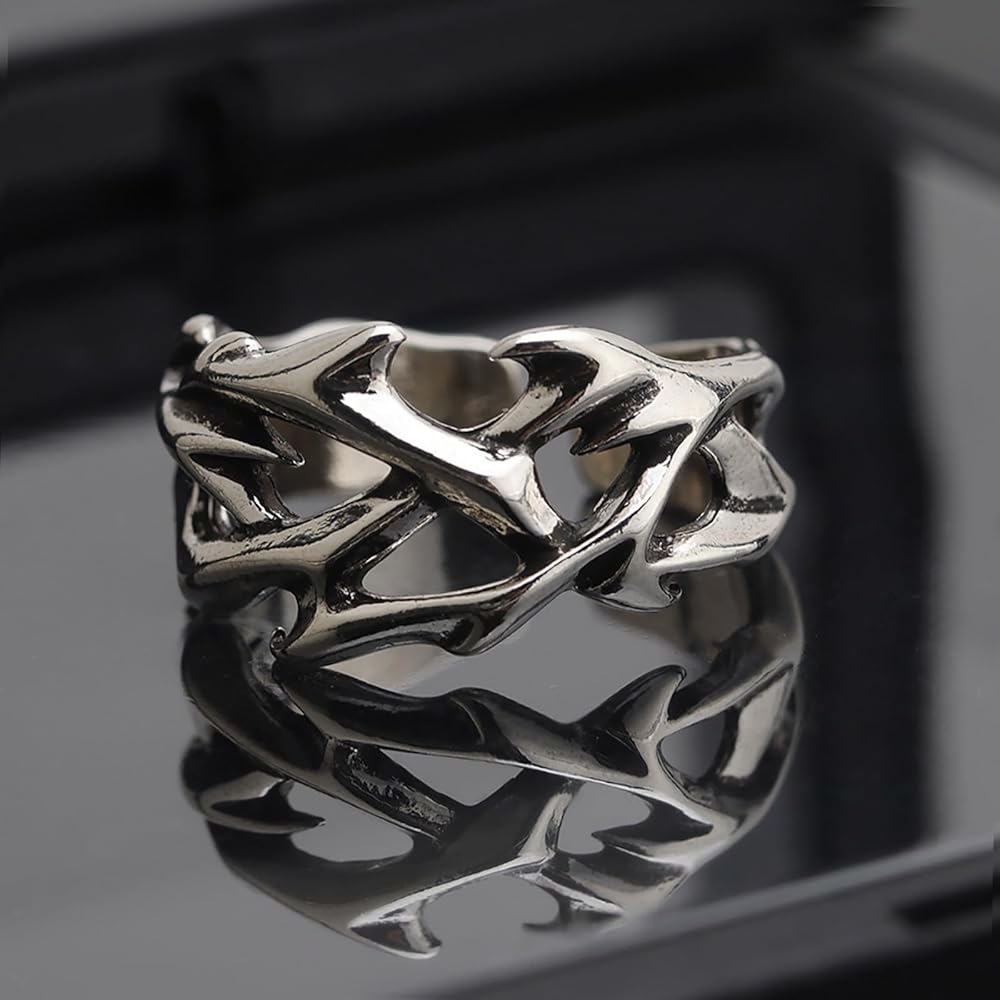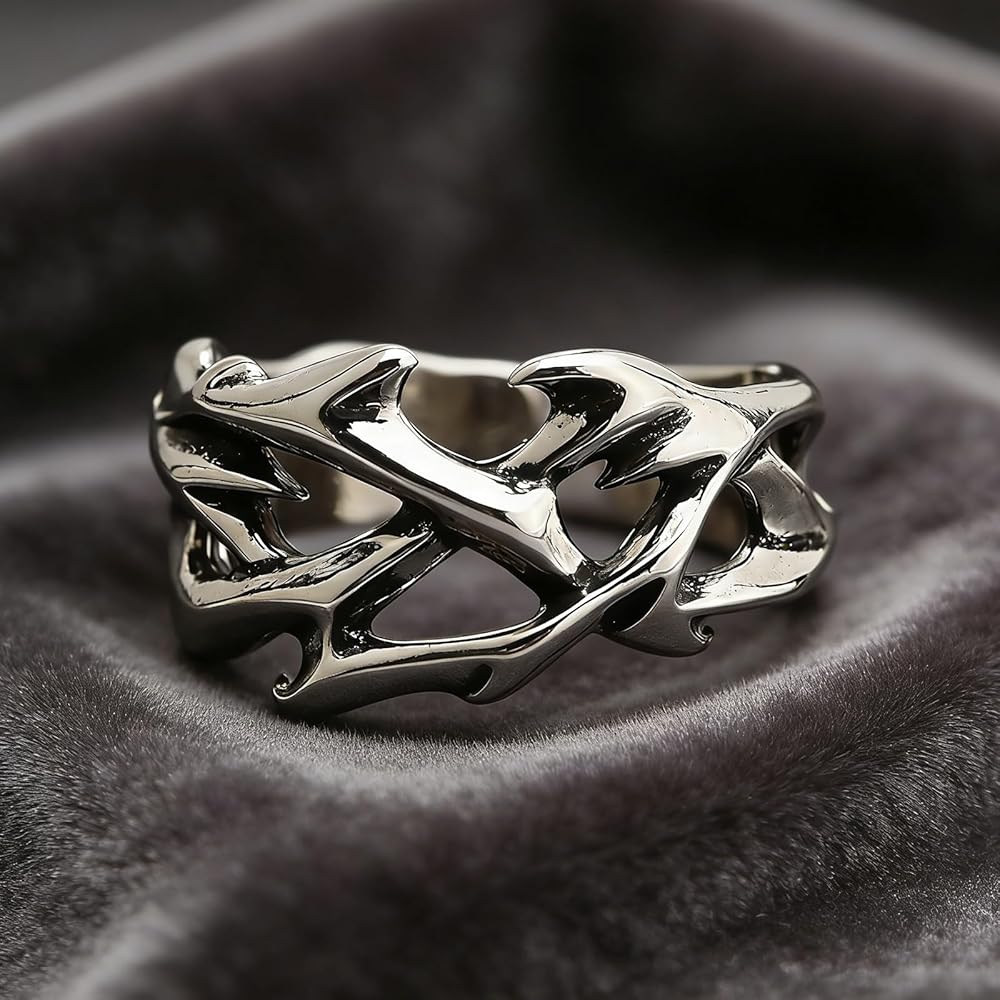 【Material and Craftsmanship】Meticulously crafted, this ring is made from premium materials that combine durability with a rustic aesthetic. The silver finish enhances the rugged appeal of the thorn-wrapped design, creating a piece that exudes character and individuality