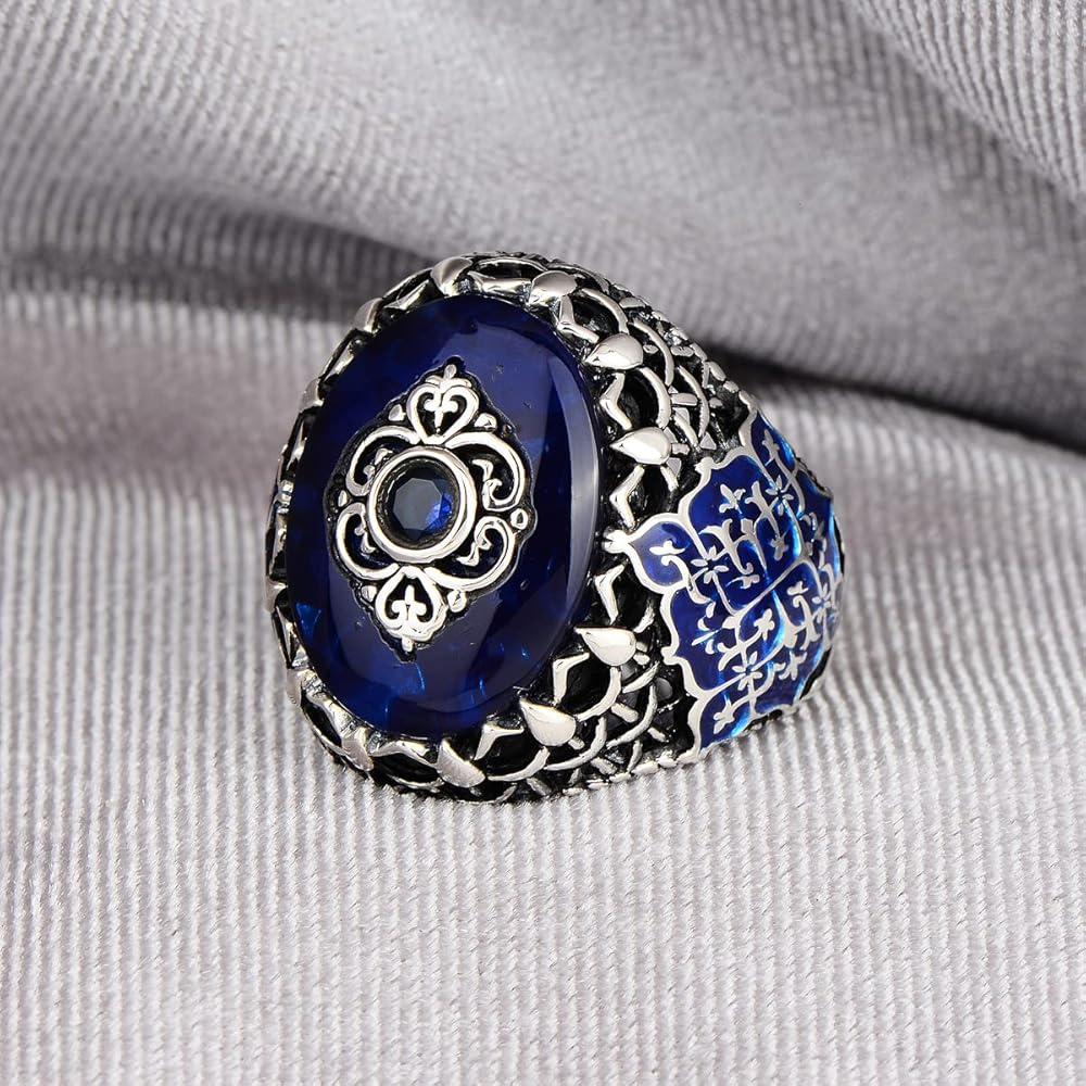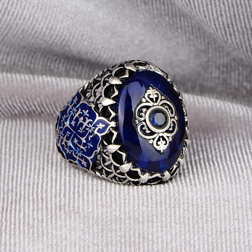 Silver Handmade Ring, Blue Agate Stone Ring, Ottoman Style Ring, Natural Stone Ring, 925k Sterling Silver Ring, Gift For Him