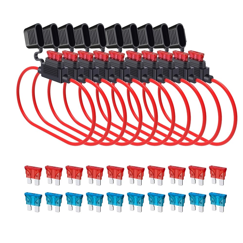 Package Included:10pcs inline Automotive Blade Fuse Holder, 20pcs Standard Car Fuses(10pcs 10A & 10pcs 15A)