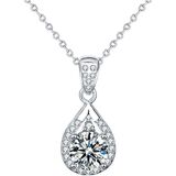 14K Gold Over Sterling Silver Vintage Teardrop 1/2/3 Carat Diamond Pendant Necklace for Women, D-Color VVS1, Timeless White Diamond Elegance