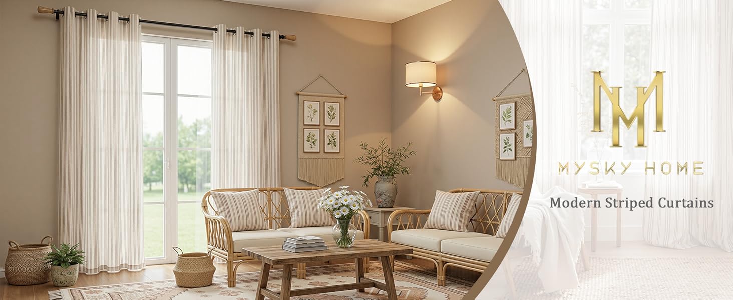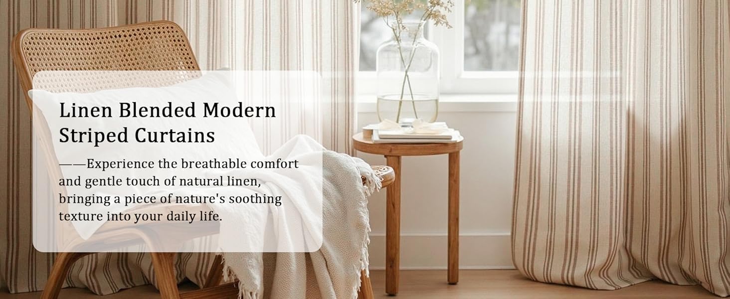 Airy Linen-Blend & Classic Stripes: Made from lightweight, breathable linen-blend fabric, these curtains combine natural texture with classic stripes to bring a cozy yet vibrant touch to your room.