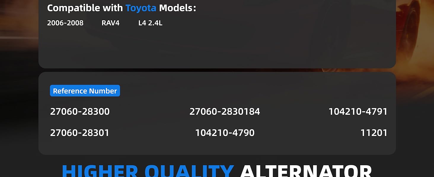 【Durability & Reliability】: Manufactured with high-quality materials and subjected to rigorous no-load, load, and full-quality testing. Designed specifically compatible with Toyota RAV4 L4 2.4L 2006-2008. Verify your vehicle details and part number for a perfect, hassle-free fitment