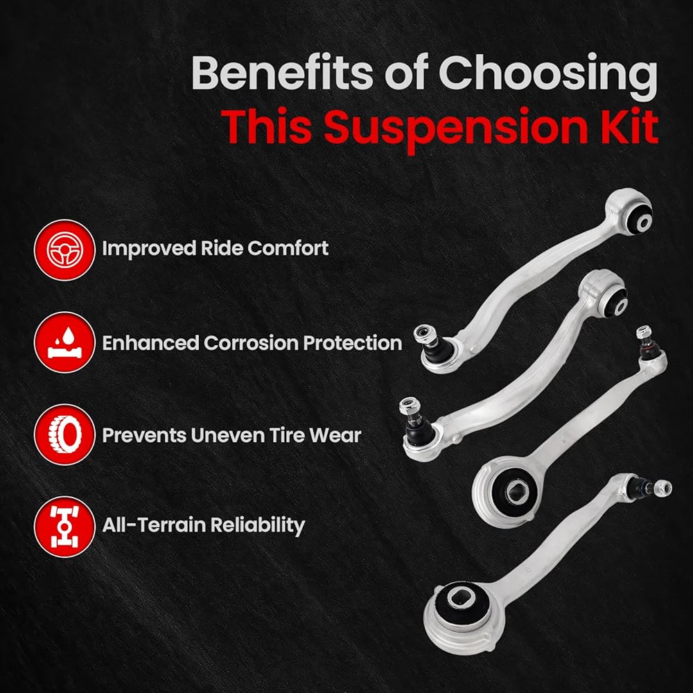 【Convenient Complete Kit】Set of 4, front lower forward rearward control arm kit, with ball joint & bushing, saving time and effort by addressing wear on both sides simultaneously