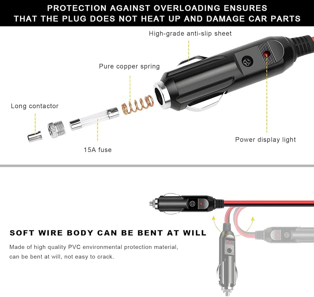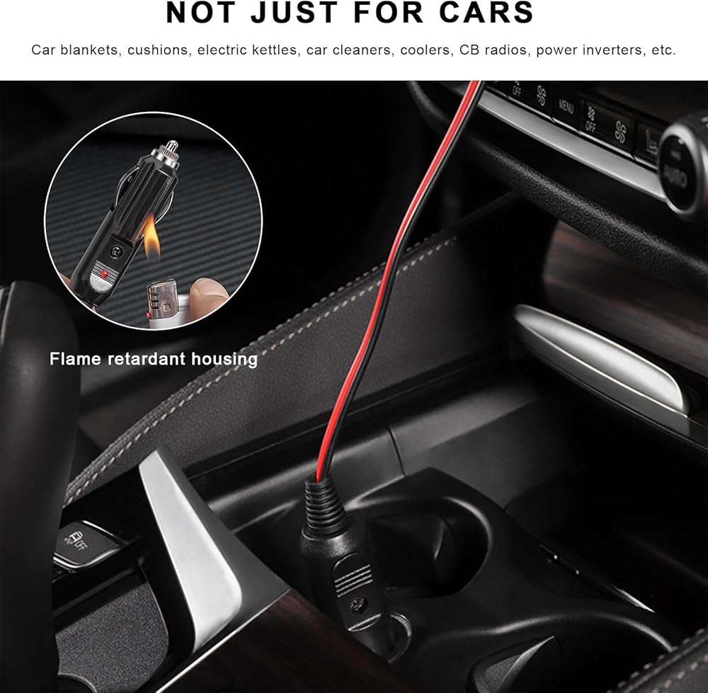 Wide Application: The cigarette lighter plugs are compatible with the 12-24V DC cigarette lighter sockets of most cars. They are suitable for car coolers, electric cups, radios, power inverters, and other accessories, which have wide applicability to meet all your daily needs