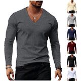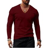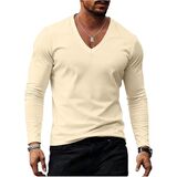 Long Sleeve Shirts for Men - Casual Soft Breathable Full Sleeves Mens V Neck T Shirts in Kuwait