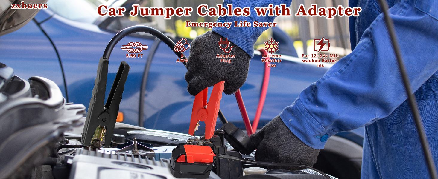 6.56FT 8AWG Milwaukee Jump Starter, M18 18V Jumper Cables for Car with Adapter, Automotive Battery Jumper Cables for Mid-Size Cars Light Trucks Car Jump Starting Using Tool