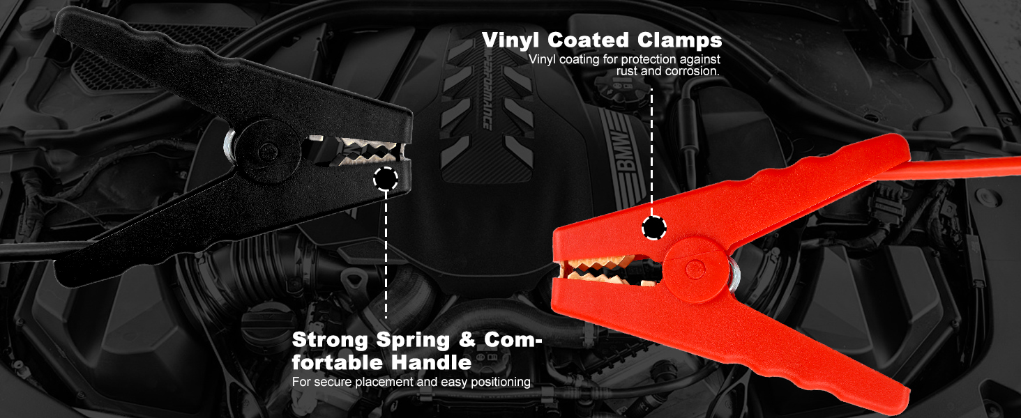 Tips: Remove the cables within 30 seconds after starting your vehicle to prevent potential hazards. Avoid reversing the operation sequence. Our booster cables for car battery is overload-resistant, so always check your device power before use. Note that this product does not convert or step-down voltage. Confirm your power bank's capability to support your vehicle's power requirements and prioritize safety at all times.
