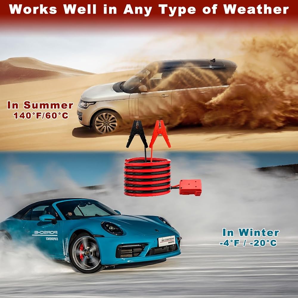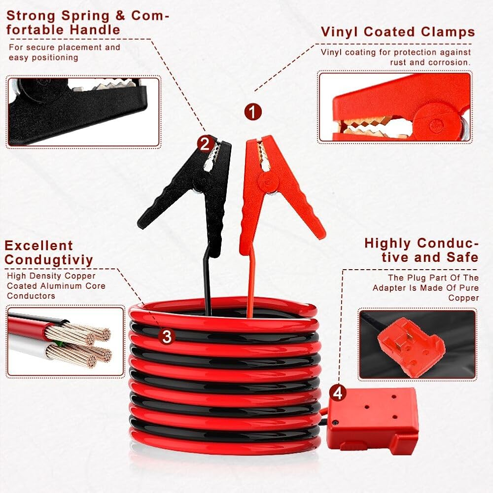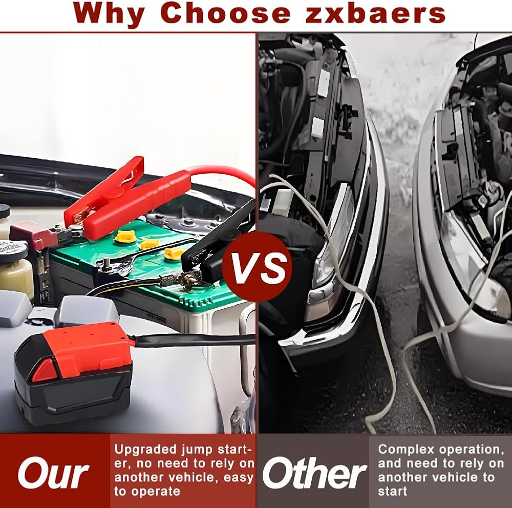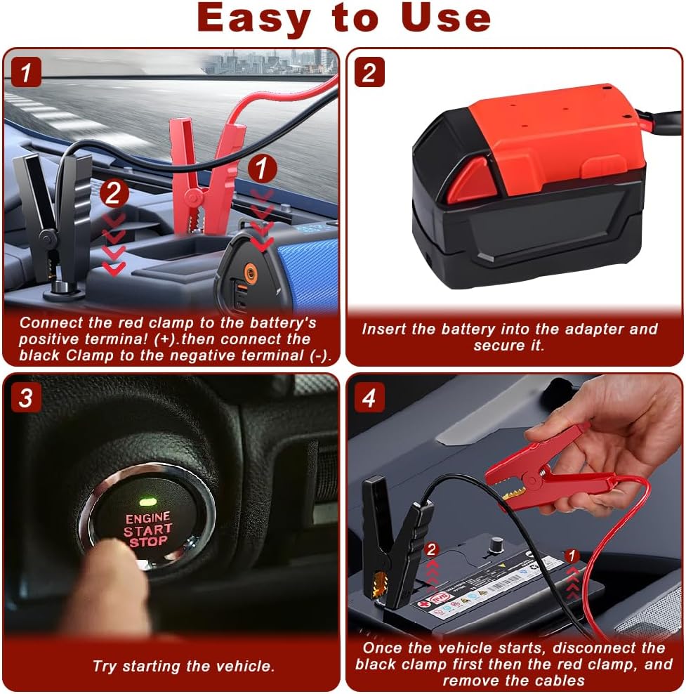 Battery Jump Starterr: Jump start your vehicle with a weak or dead battery during emergencies, without asking for help from a stranger or another vehicle. 8-AWG 6.56 FT wire. Adapter compatible with all Milwaukee M18 18V batteries. Perfect for most 12V motorcycles, cars, and SUVs, capable of jumpstarting up to 5.0L gasoline and 3.0L diesel engines. (Battery not included)