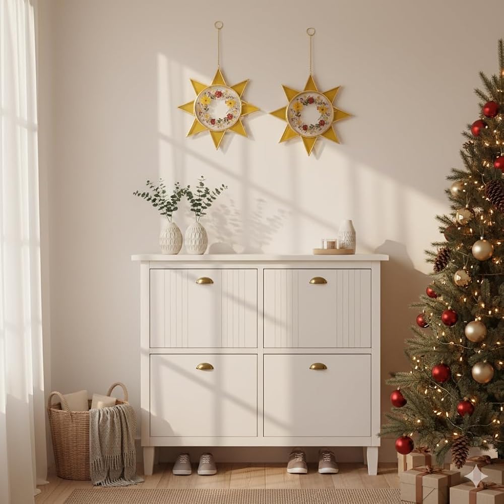 Mesmerizing Artwork Decoration on the Wall: Sunbust Flower Frame offering versatile display options for holiday photos, Christmas artwork, or festive pressed flowers. Create a personalized Christmas collage or showcase your favorite memories on your Christmas tree, mantel, or throughout your home for a charming seasonal touch