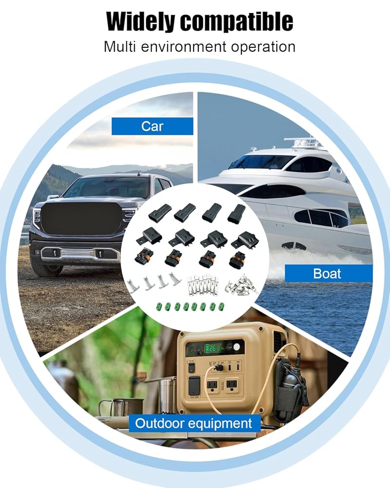 Versatile Compatibility: Waterproof connector kit is ideal for automotive, marine, and outdoor equipment, providing stable, reliable connections that help your system function seamlessly across various demanding environments