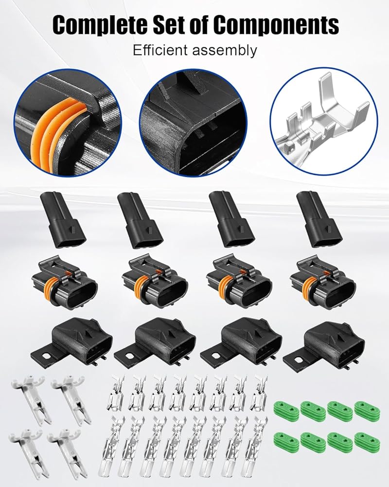 Durability: 2-pin connector kit features high-quality conductive terminals and durable seals, built to endure repeated insertions, shocks, vibrations and temperature changes, ensuring consistent performance and reducing the need for frequent replacements