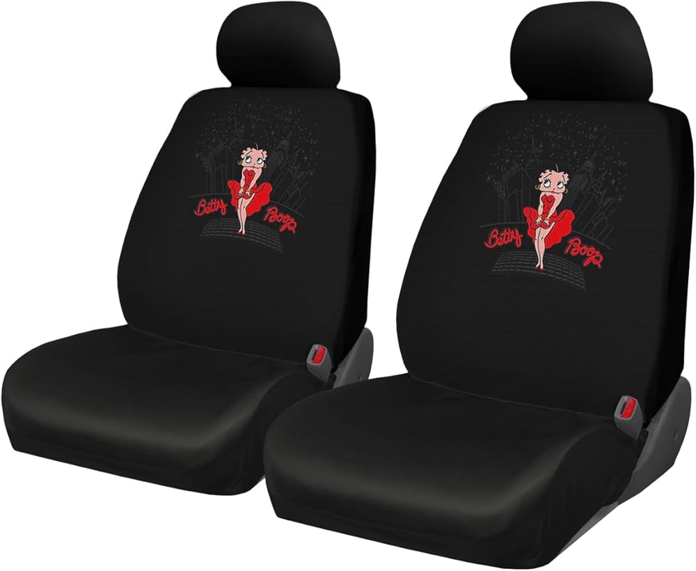 Featuring the beloved Betty Boop skyline graphic, this set includes a seat cover, front rubber floor mats, and a steering wheel cover, all designed to enhance your car's appearance while offering top-notch protection.