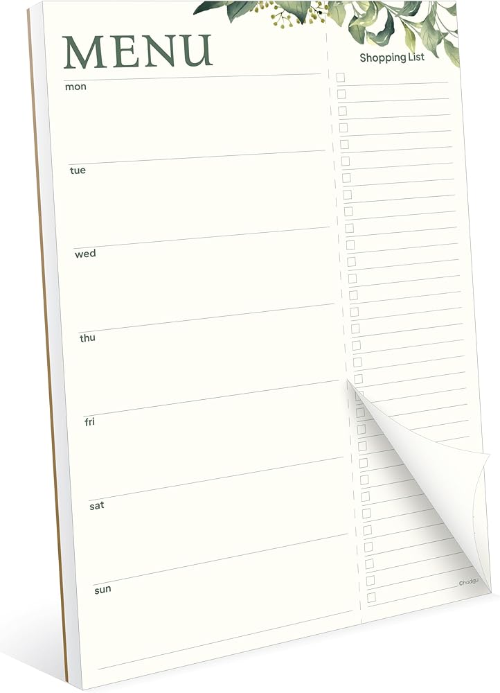 With a perforated shopping list section, you can easily write down what you need and tear it off before heading to the store. The strong magnetic backing ensures it stays put on your fridge, keeping your meal plans visible and accessible at all times. Made with premium-quality paper and a durable hard backing, this notepad combines functionality with a sophisticated aesthetic, making meal planning a breeze.