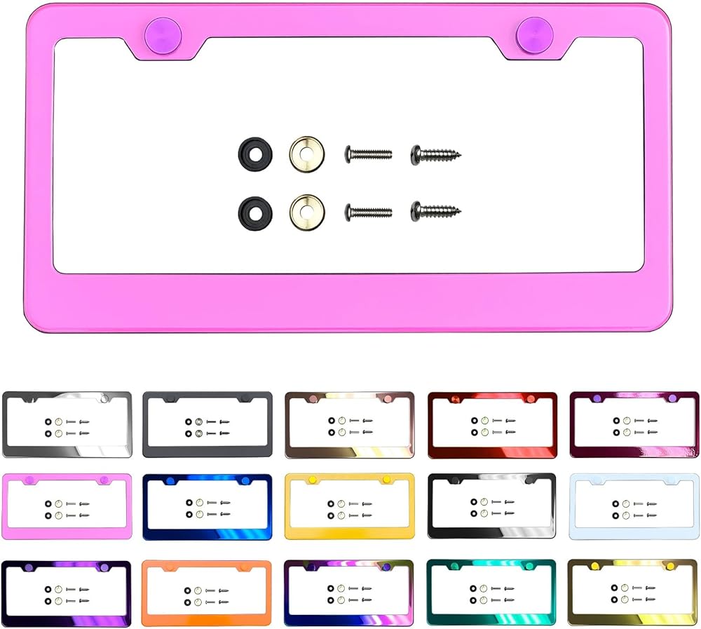 • DURABILITY: T304 Stainless Steel License Plate Frame is designed with durability in mind. It comes equipped with two Aluminum twist-on screw caps, allowing for secure installation in various weather conditions. The option to insert either a metal or plastic washer provides added protection against snowing or bay area weather conditions. Rest assured that this product will withstand the test of time and weather elements.