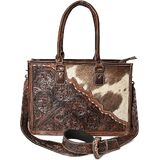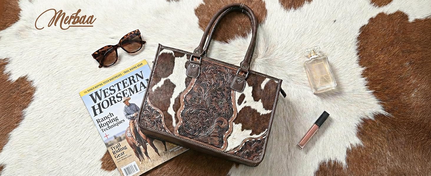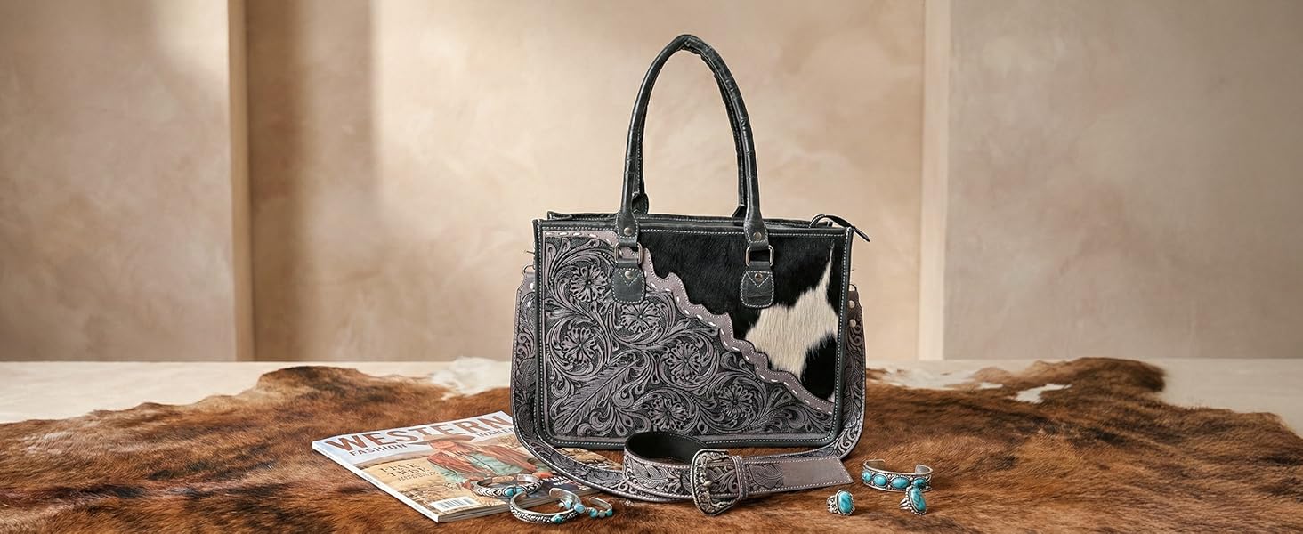 - Authentic Western Craftsmanship – Features hand-tooled floral leather combined with genuine hair-on hide for a bold, rustic cowgirl look.
