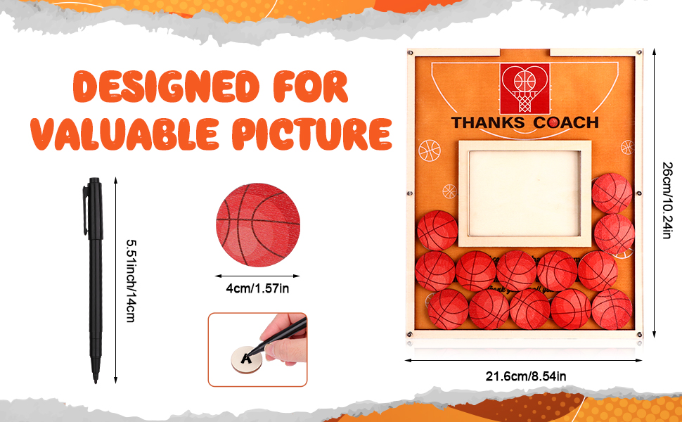 Unique Design: The frame is 8” X 10” and holds a single 3” X 3.9” photo. Add a personal touch by signing on the 13 basketball chips included in our coach gift set; The creative design and warm words make it an ideal basketball thank you gift that will always remind your coach of your gratitude