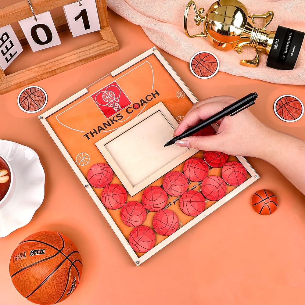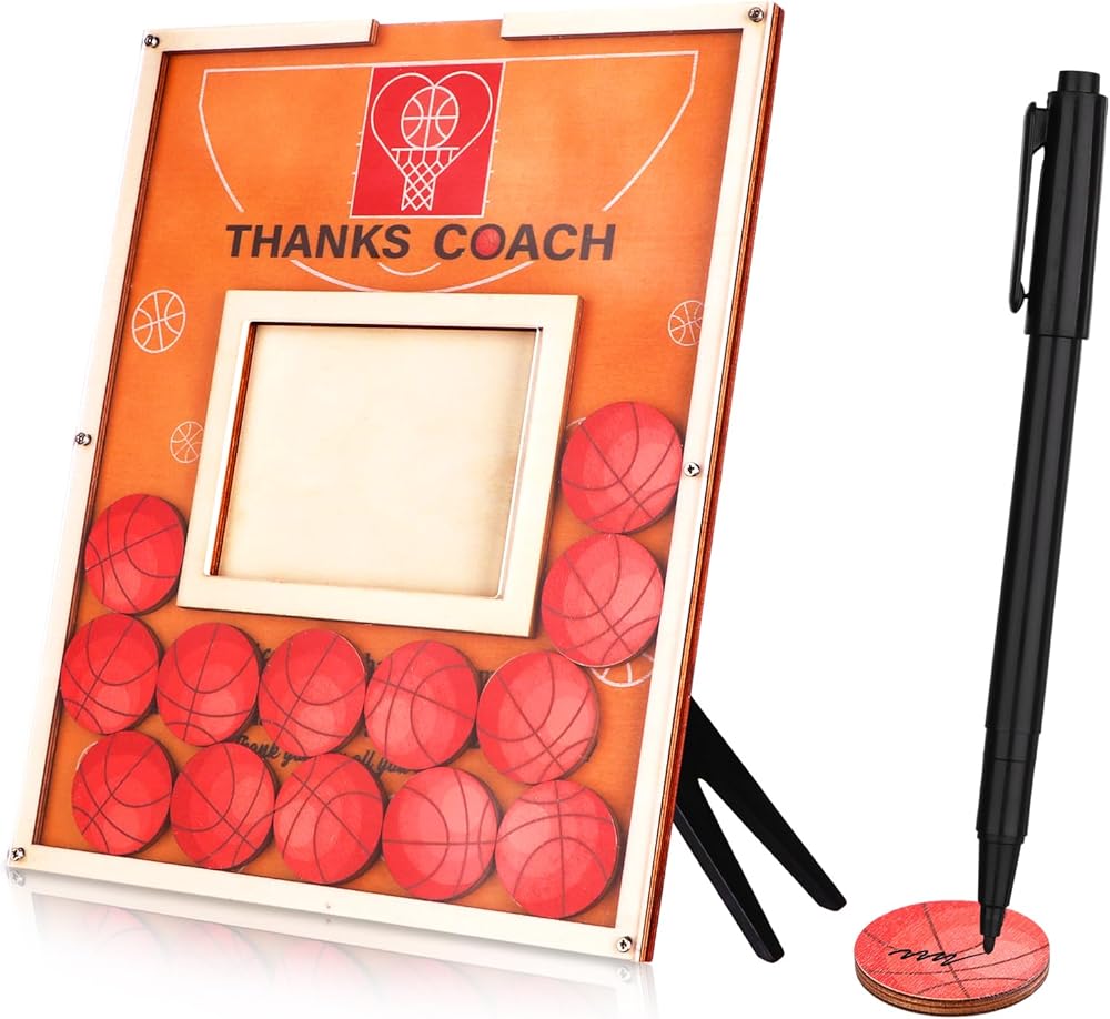 Basketball Frame Coach Gift with 13 Basketball Wood Chips Signature Pen for Women Men Team Player Hockey Cheer Coach Graduation Coach Frame Gifts ThanksCoach Gift