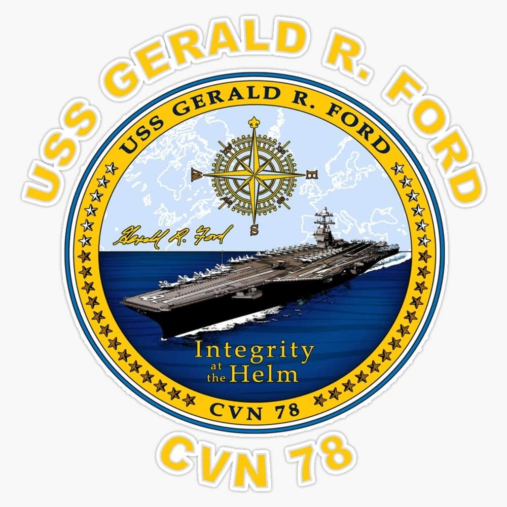 Leyland Designs USS Gerald R. Ford (Cvn-78) Crest for Dark Colors Sticker Outdoor Rated Vinyl Sticker Decal for Windows, Bumpers, Laptops or Crafts 5" in Kuwait