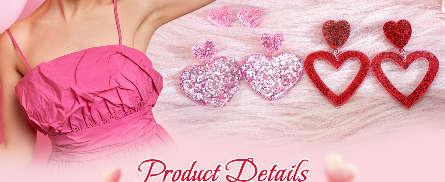 Quality Acrylic Material with Secure Design: Crafted from durable acrylic with metal posts and clear silicone ear backs for comfortable, secure wear. These heart earrings for women are hypoallergenic and lightweight, suitable for all-day comfort during Valentine's celebrations. The high-quality acrylic valentines earrings construction ensures these earrings maintain their vibrant pink color and sparkling appearance throughout your special romantic moments and beyond.