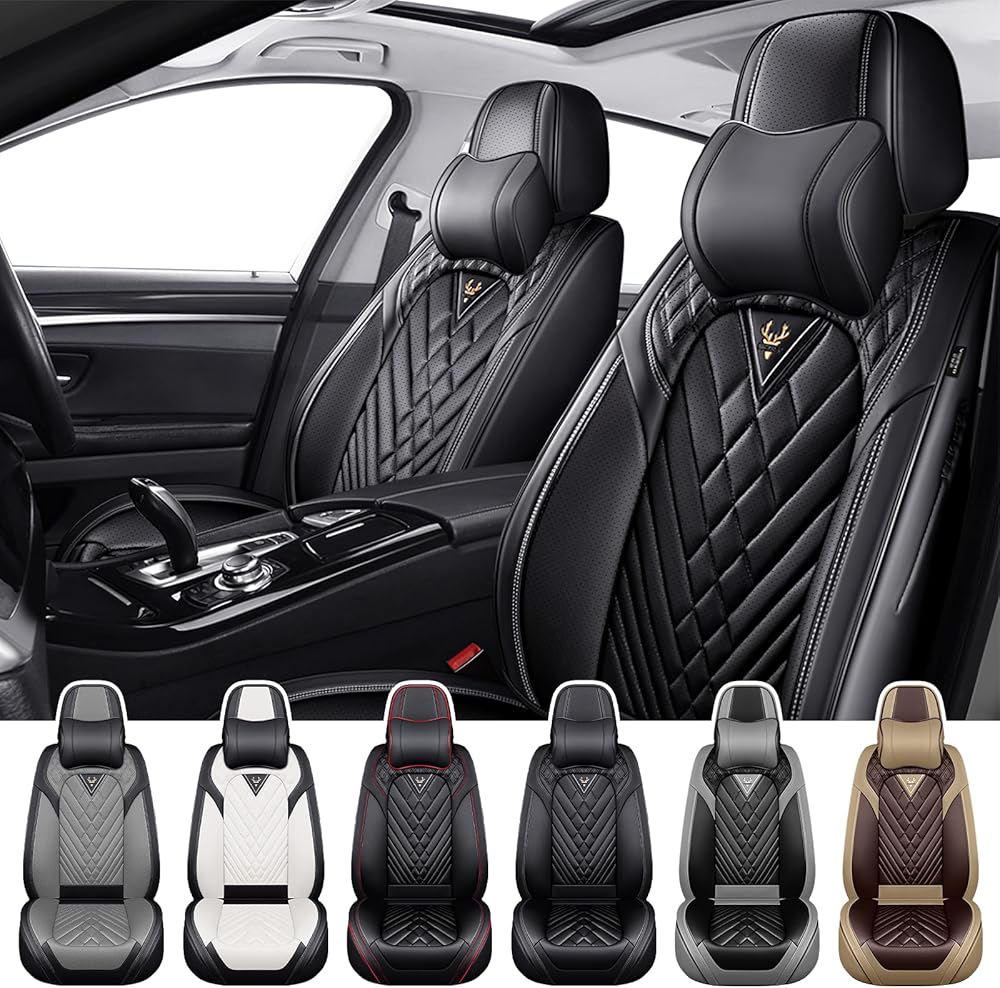 • 【Luxury Design】:Our car seat covers are made of exquisite leather as well as high-end stitching,the diamond-shaped design of the seat cover adds a luxurious flavor,and the deer-shaped logo signifies a safe trip.
