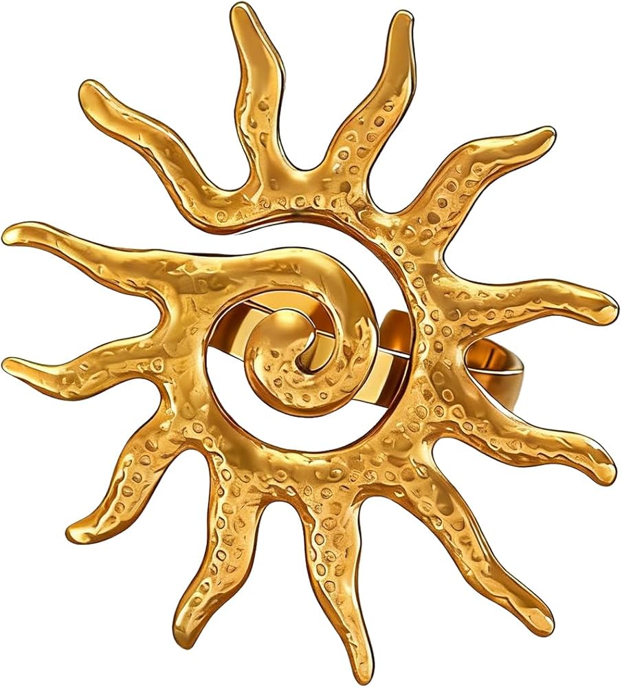 [Design Inspiration]Step into a realm of radiance with our large gold sun ring, a captivating accessory inspired by the brilliance and warmth of the sun. This ring draws its inspiration from the celestial beauty of the sun, capturing its luminosity and energy in a striking and bold design