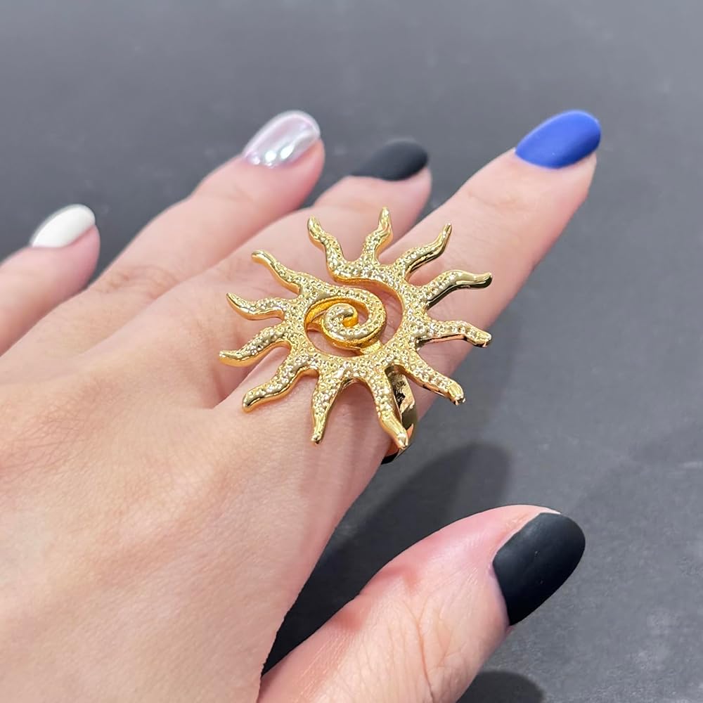 [Versatile Styling Companion]This large gold sun ring is designed for everyday wear,offering a delicate touch that effortlessly complements any outfit. Whether worn solo or layered with other,helping you make a statement