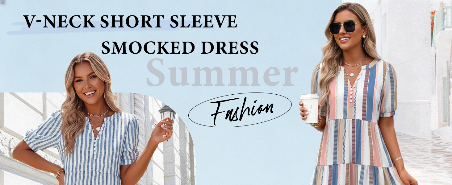 Fashion style: Short sleeves sundress for women 2026, sundresses for women, a line casual dresses, beautiful boho floral printed dress for women, striped dress, solid color dress with pockets, fashion v-neck dress, beach swim cover-ups, tunic dress, summer mini dress, summer dresses, vacation dress, loose fit sundresses, casual spring dress, daily dress.