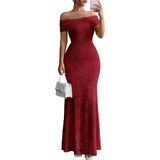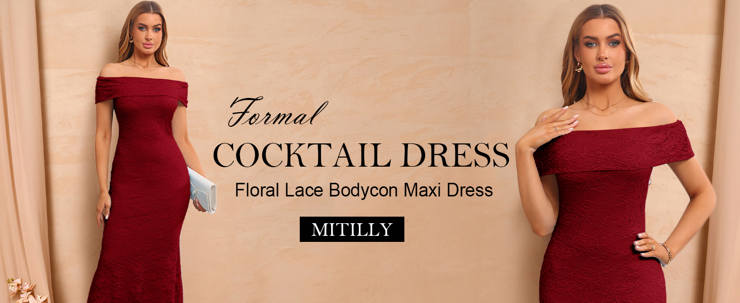 STYLISH DETAILS: This elegant cocktail dress features chic flower lace textured, sexy off shoulder design, stretchy sleeves with elastic band, bodycon fit, which enhance your curves, emphasize the beauty and charm of the individual lady. The long dresses with lining is not see through, great as beach dress, wedding guest dress, cocktail party dress, formal dress, date night dress and more.