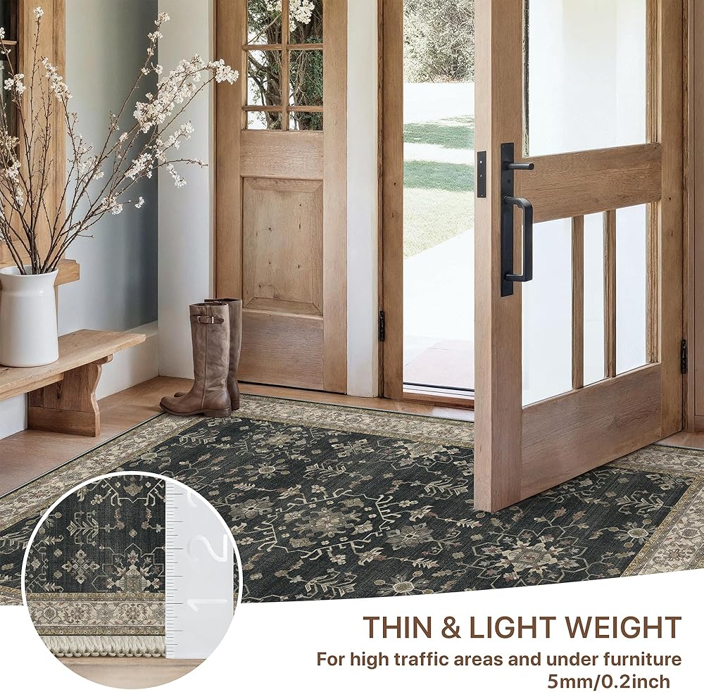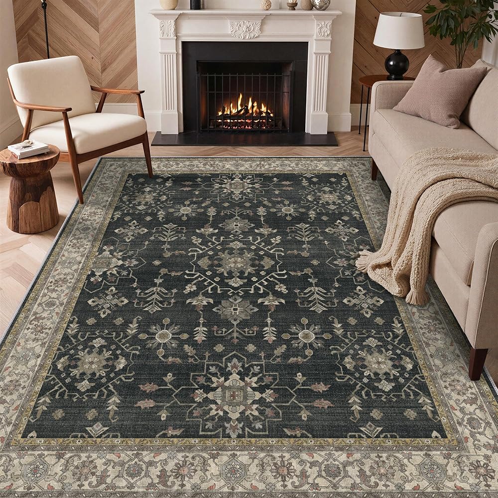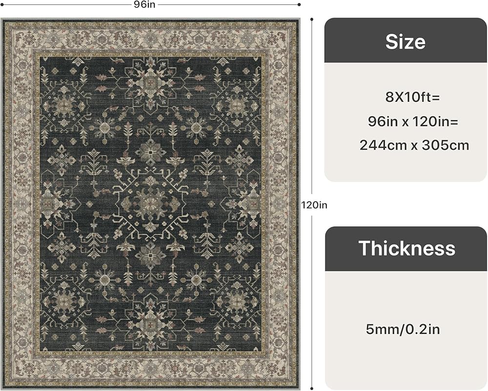 GENIMO 8x10 Area Rugs, Machine Washable Rug Non Slip, Soft Retro Vintage Boho Rug Indoor, Ultra-Thin Low Pile Large Rugs for Living Room, Bedroom, Dining Room, Home Office, Brown