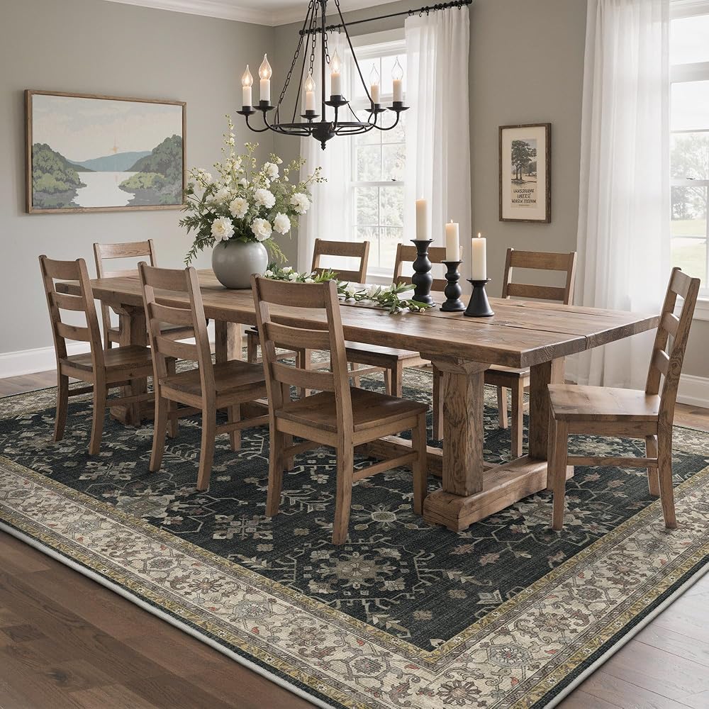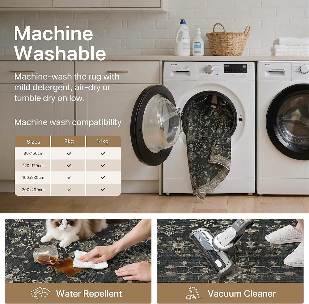 Easy Care & Mashine Washable: Spills or pet messes? No problem. This living room rug is easy to clean—blot stains or use a low-power vacuum for daily care. For deep cleaning, machine wash in cold water. No bleach, fabric softener, or high-heat ironing needed
