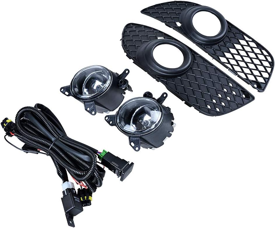 Anzio ABS Black Front Lower Grille + H11 Fog Light OE Standard Compatible with 08-14 Mitsubishi Lancer Sedan 4-Door Models