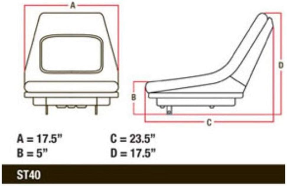 One New Aftermarket Replacement High Back Seat - Yellow Fits John DeereFits John Deere Compact Tractor Model(s): 3025E (North America Edition), 3032E, 3038ETech Info:Accepts Seat Switch, Seat Switch Is Not IncludedHeavy-Duty, molded yellow, vinyl cover. Installs easily with pivot pin.Replaces Part Numbers: LVA19221, LVA14488, AM122871, AM126865, AM131156, LVA23687
