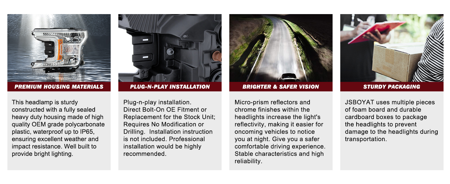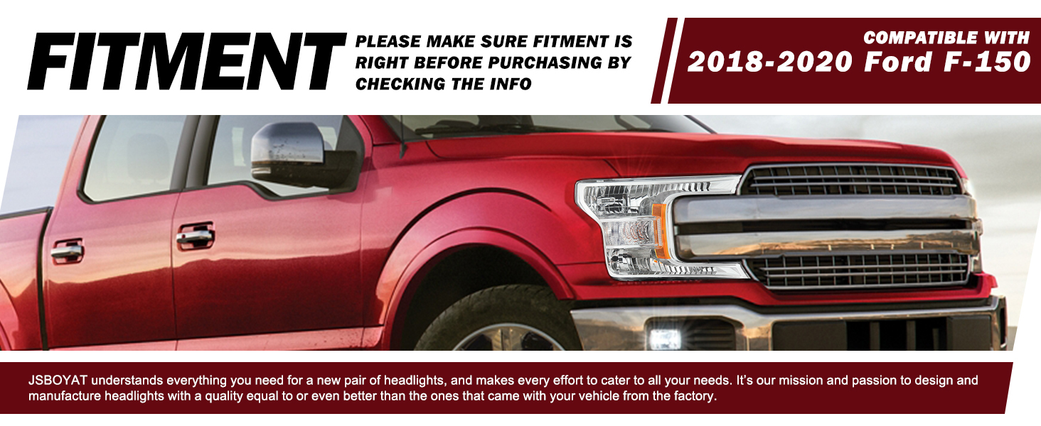 💡【VEHICLE COMPATIBILITY】Headlight assembly is compatible with 2018-2020 Ford F-150. Compatible with Halogen Type Headlight Models. Not Compatible with Factory LED Headlight Models. Bulbs are not included. High beam bulb type: 9005; low beam bulb type: H11; signal light: 7444NA; side marker light: 168. OEM Part Number: KL3Z13008C; Partslink Number: FO2503372.